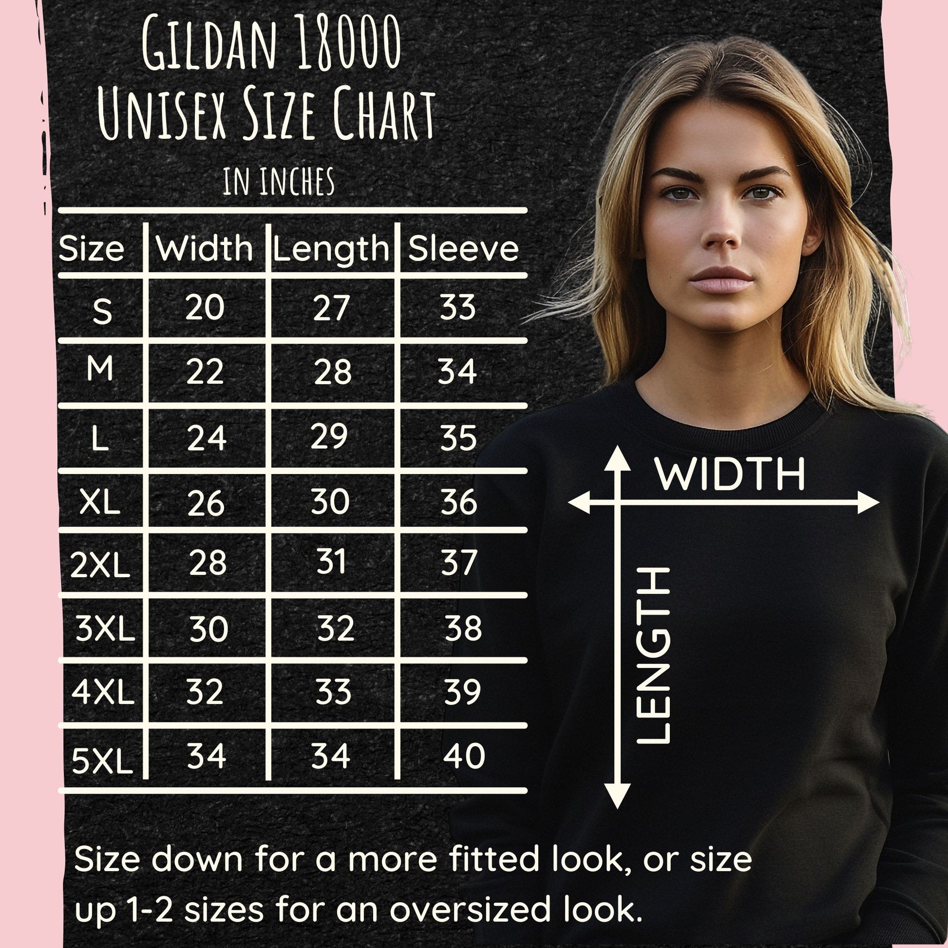 This sweatshirt fits like a normal unisex sweatshirt so if you order your normal women's or men's size, then it will be a nice relaxed fit. If you want an oversized sweatshirt, then I would size up 1-2 sizes. If you want a fitted sweatshirt, order 1 size down. But feel free to lay a sweatshirt you like the fit of at home flat and measure from armpit to armpit and compare to our size chart (see in pictures) to be sure you get the perfect fit!